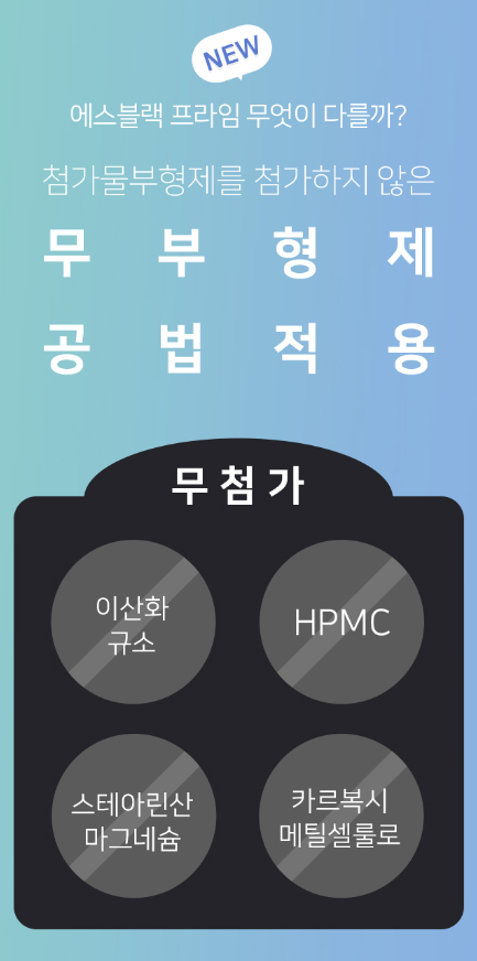 아산화규소, HPMC, 스테아린산마그네슘, 카르복시메틸셀룰로등의 부형제 첨가 X