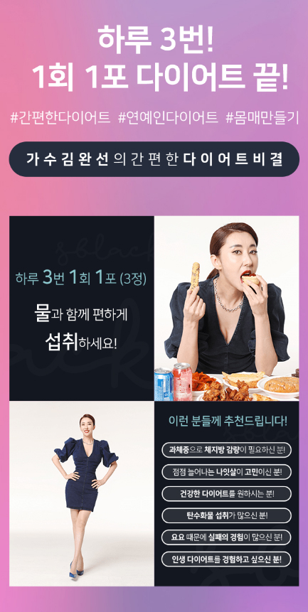 가수 김완선의 간편한 다이어트 비결 하루 3번 1회 1포 (3정) 다이어트 고민 끝 ~♥