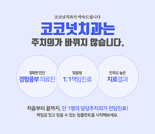 코코넛치과는 주치의가 바뀌지 않습니다.