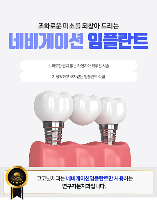 강남역임플란트치과 코코넛치과는 네비게이션임플란트만 사용하는 연구자문치과입니다.