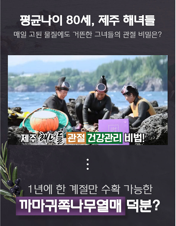 - 제주해녀들의 건강한 관절비결! 유네스코에서 지정한 청정지역 제주도산 100% 까마귀쪽나무열매
