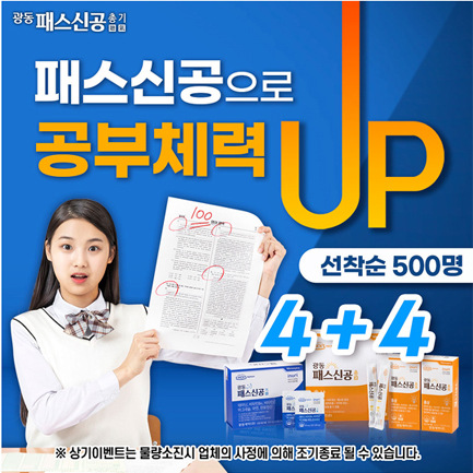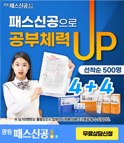 이에 완벽한 공부 체력케어 중고등학생 건강에 필요한 기능성을 담은 맞춤형 멀티 포뮬라 광동패스신공 기氣, 광동 패스신공 총聰, 공부체력 UP 지금 챙겨주세요!