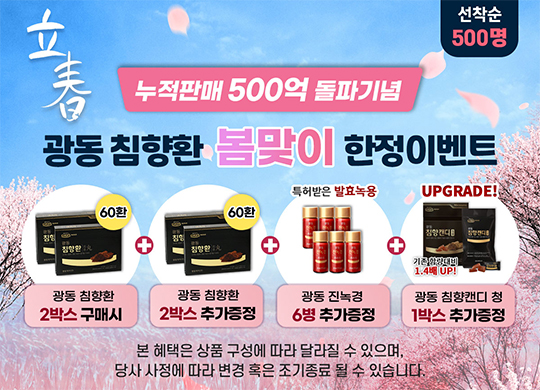 배우 김영철 광도 광동 침향환 누적판매 500억 돌파 기념 선착순 500명 이벤트 놓치지 마세요!